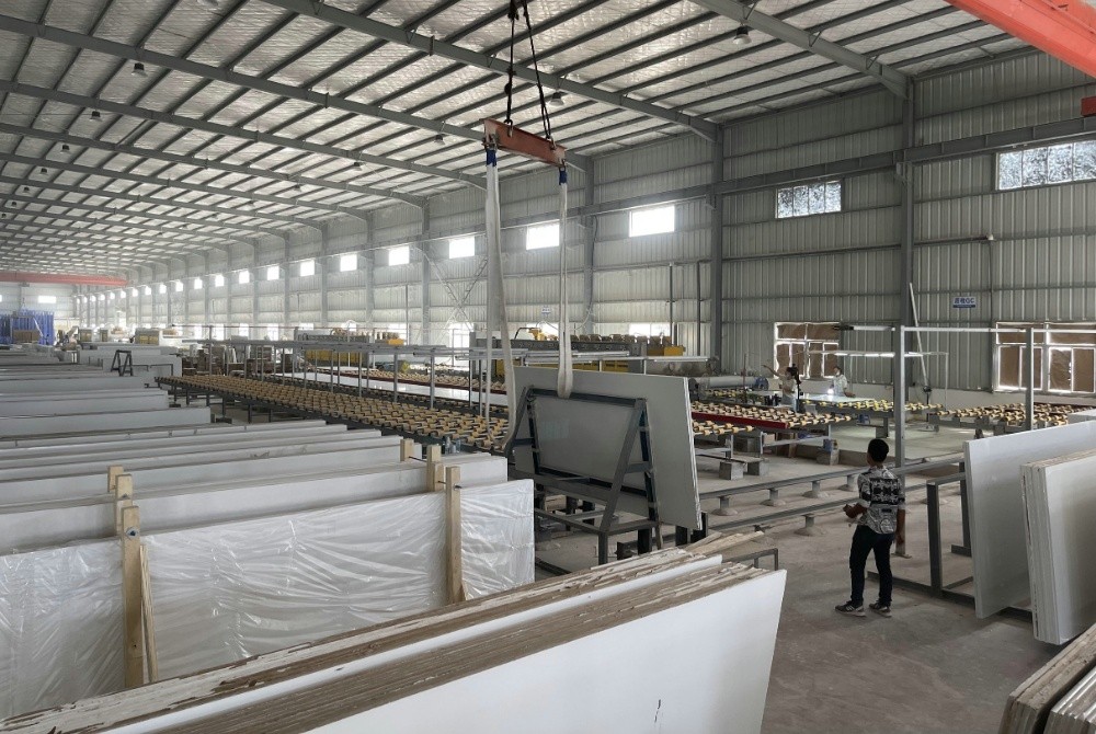 柬埔寨高金石有限公司是由福建磐珉新材有限公司于201911月在特區設立,主要生產可應用于住宅和商業室內裝飾的環保石英石板材產品,包括廚房臺面、浴室臺面、辦公桌、墻板等,項目分二期建設,目前一期投資1000萬美元,建筑面積24000平方米,員工230人,年出口1800多萬美元;二期計劃擴建用地28000平方米。