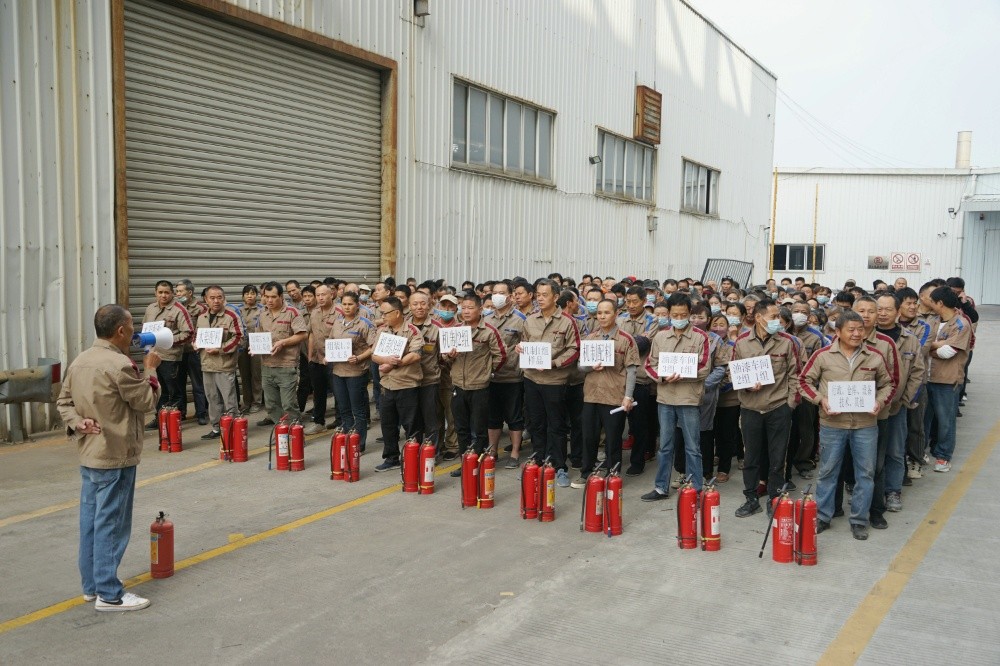 每半年一次大型的安全警示教育和實操演練,讓老員工們熟稔拿捏,但是對于新進公司的員工們來說,都必須強化訓練。這次實操以新近入職員工和行政年輕人為主,確保公司人人會用滅火器。