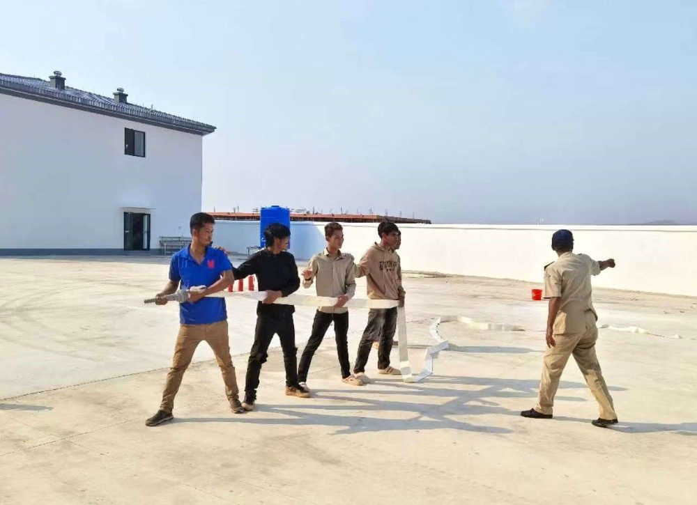 公司員工全部集結(jié)后,柬埔寨國公省消防局對消防安全知識——疏散逃生中注意的要點(diǎn)、如何報(bào)火警、火災(zāi)的預(yù)防、火場自救及逃生方法等進(jìn)行了分析講解,并教大家如何規(guī)避安全事故及正確使用滅火器和出水帶。各部門派代表進(jìn)行了干粉滅火器和水帶使用演練,使員工進(jìn)一步正確掌握滅火要領(lǐng),快速撲滅著火物。
